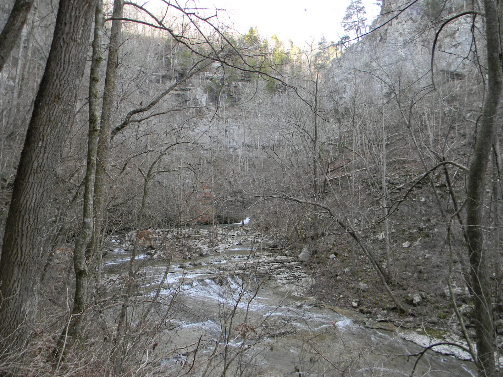 I pulled my phone from my pocket once again to check the time. It was starting to look like I would be missing Christmas Eve dinner. It was 2:00 pm. It would be dark in a few hours. Taking in consideration the time it took me to get to Alabama and I had already been hiking for roughly 21/2hours. I decided I would give myself 15 more minutes and if I hadn't reached the walls yet I would just have to come back some other time. That thought was greatly disappointing. I needed to make the most of my time so I moved forward along the narrow trails that weaved beside the cliffs.